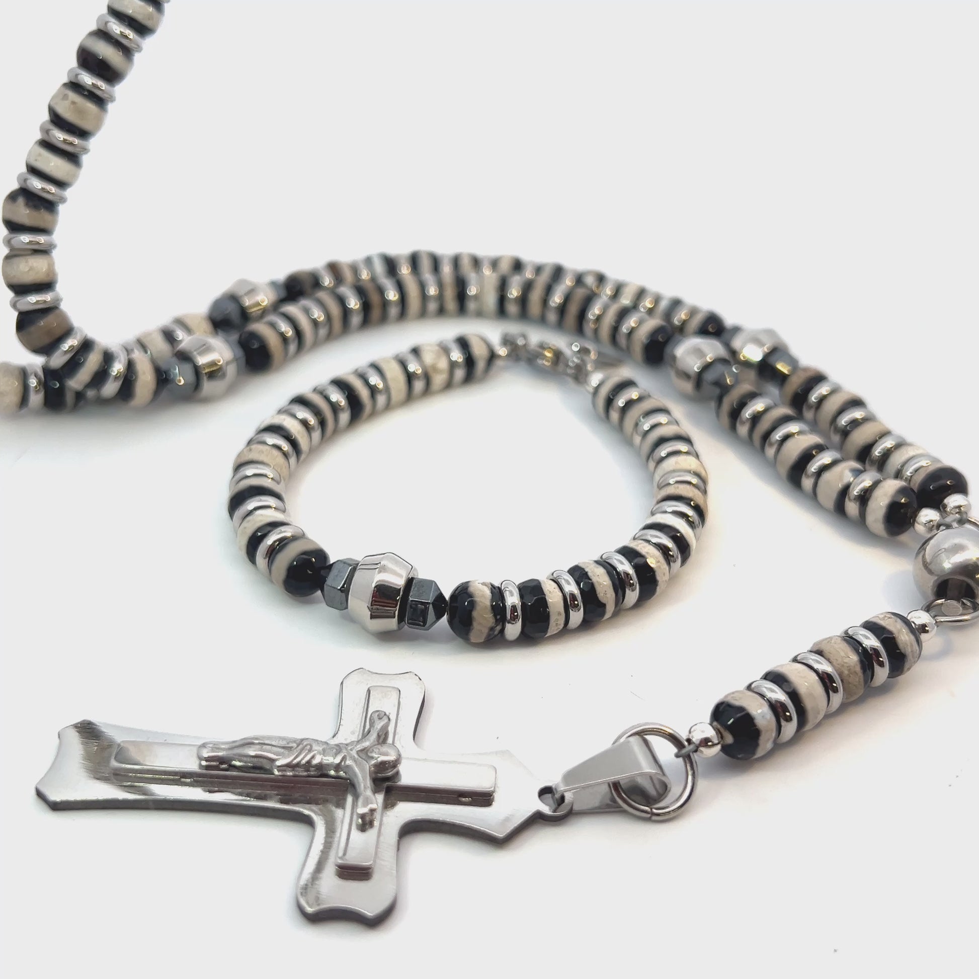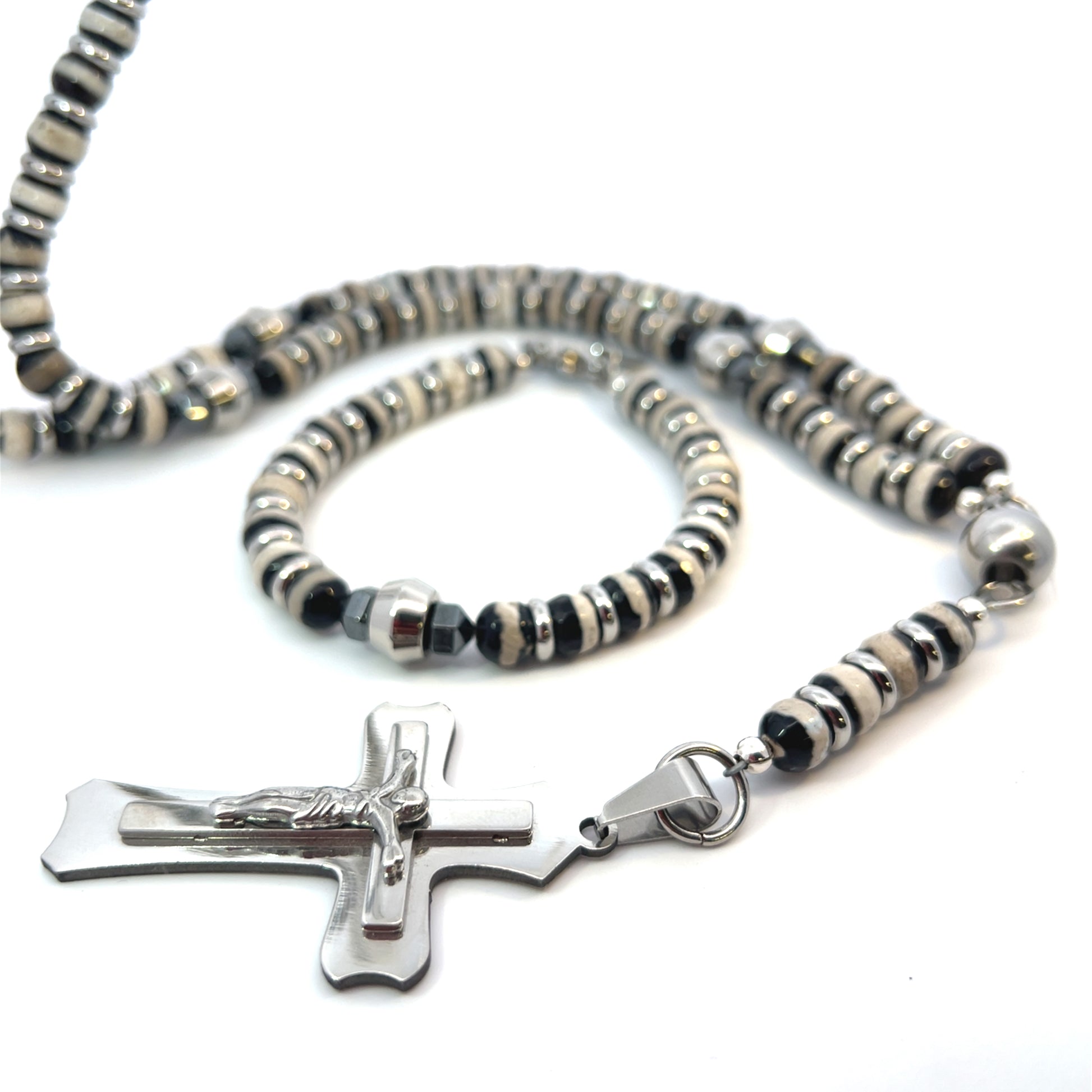 Rosary Handmade - Handcrafted - Semiprecious Stone Black Banded Agate & Hematite