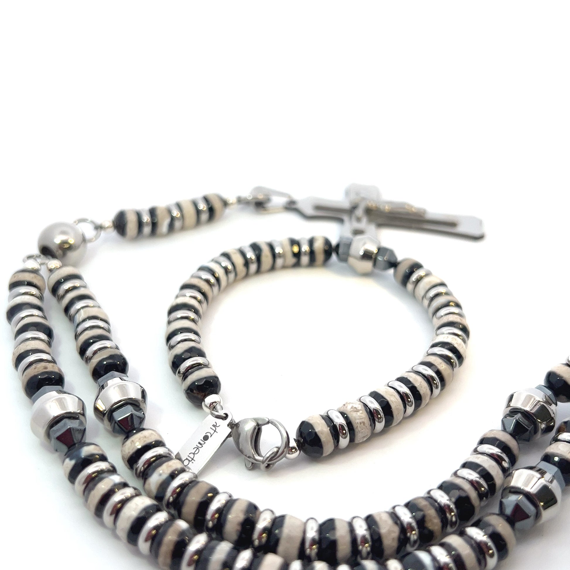 Material: Black Banded Agate, Hematite with steel spacers