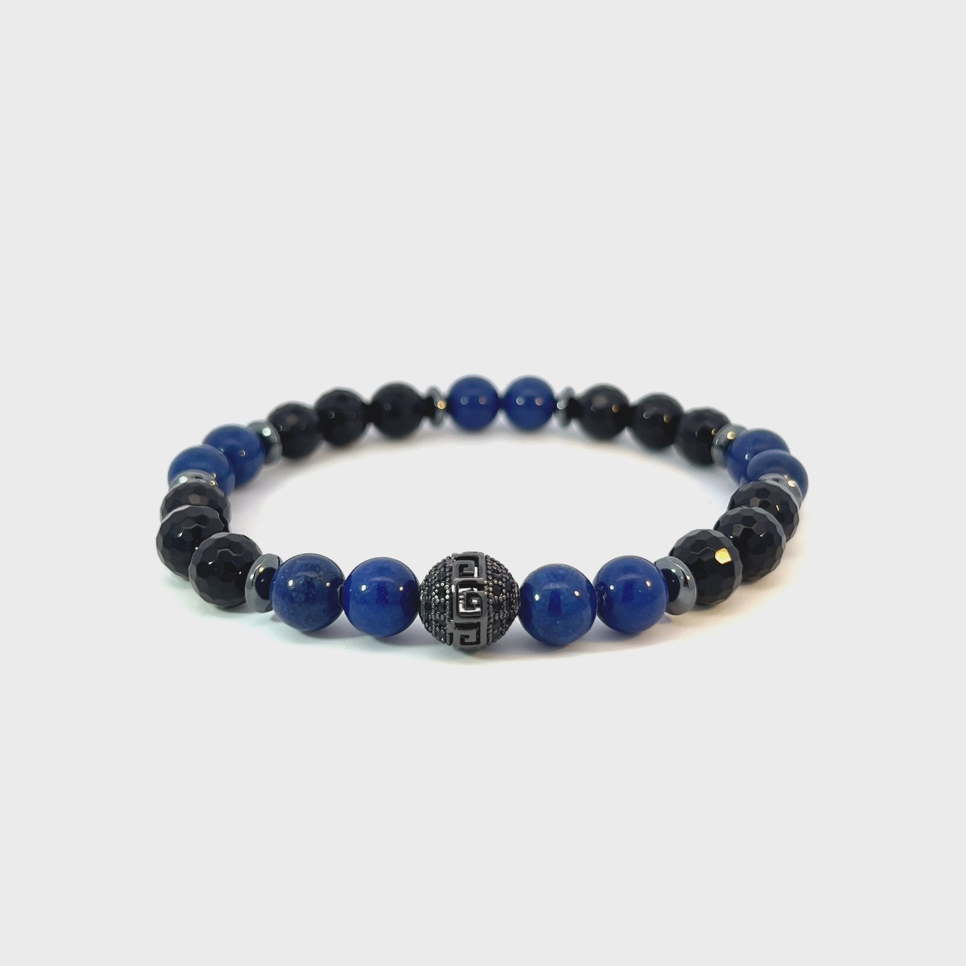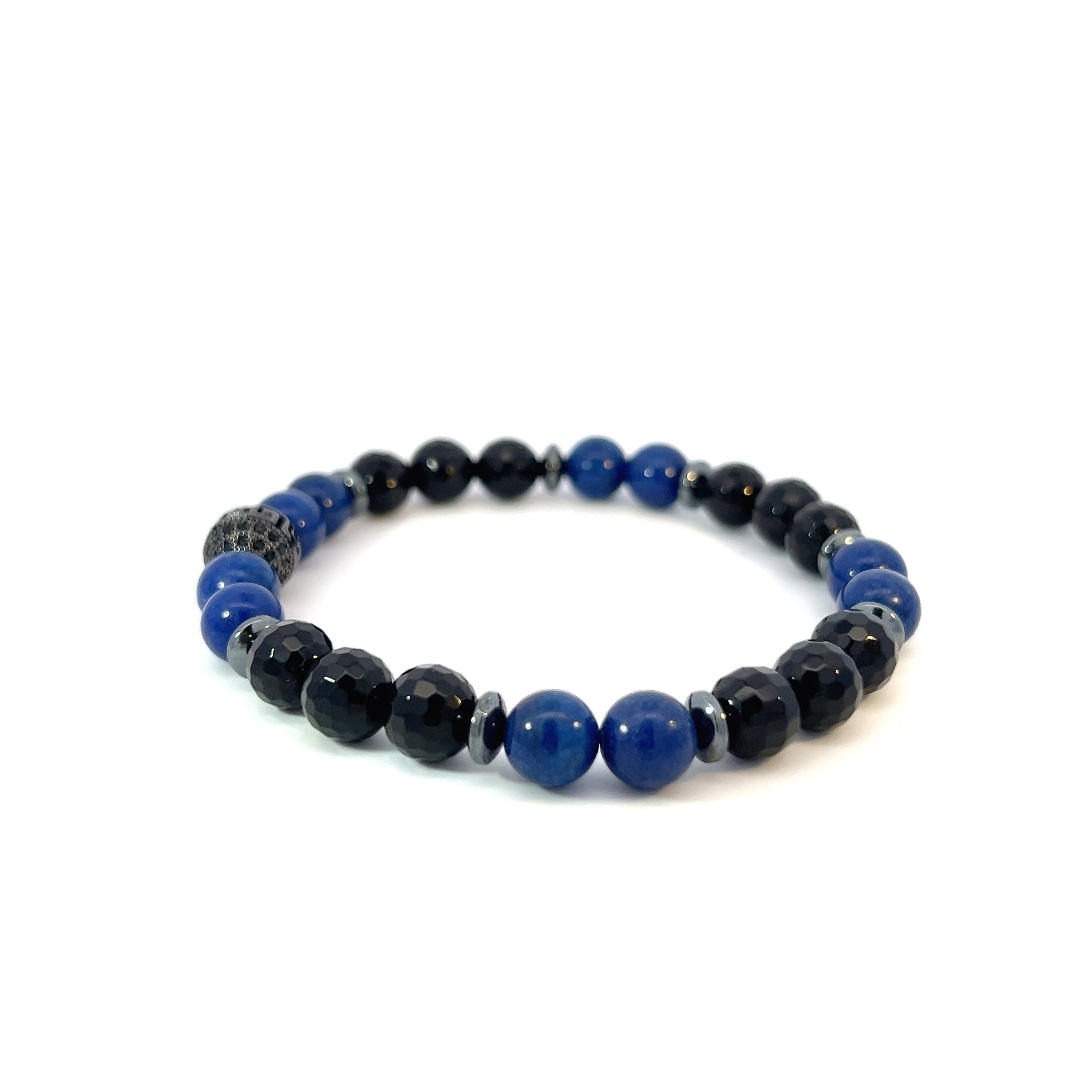 The sleek design of this bracelet makes it perfect for everyday wear or as an accent for more formal occasions. The deep blue of the jade, the sleek black of the onyx, and the lustrous hematite spacers come together to create a piece that’s both elegant and meaningful. -