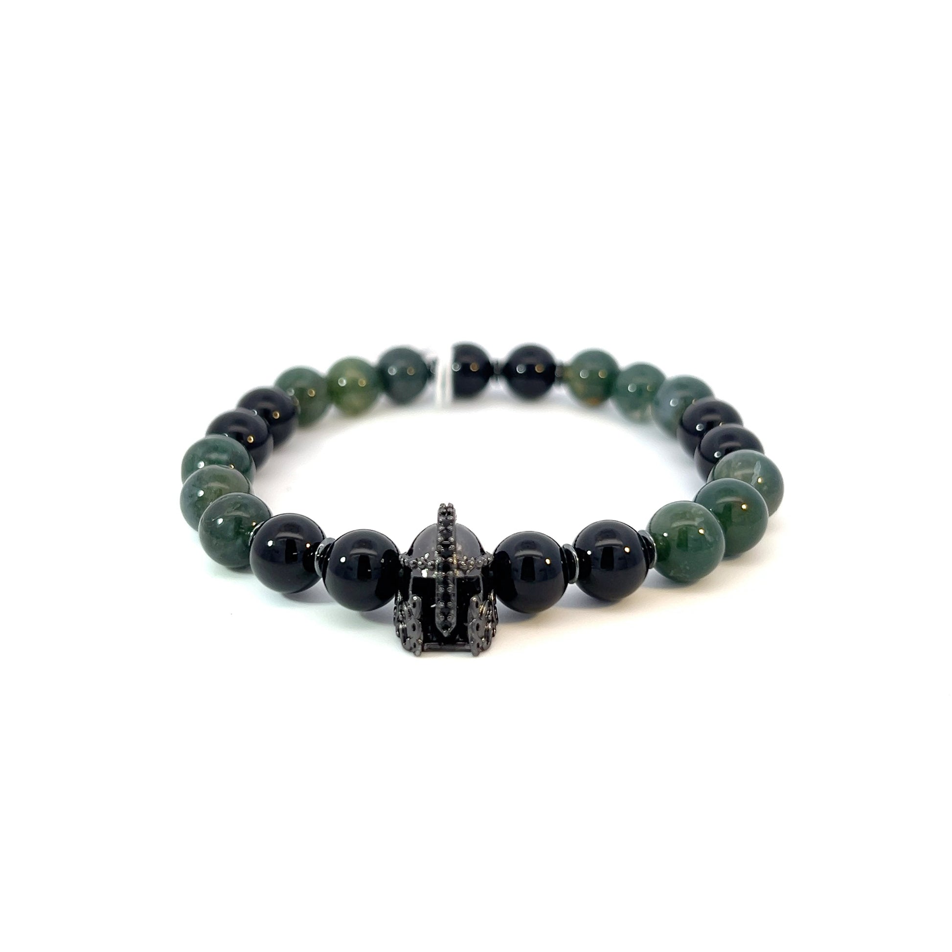 Bead Bracelet - Moss Agate and Onyx with Gladiator Centerpiece