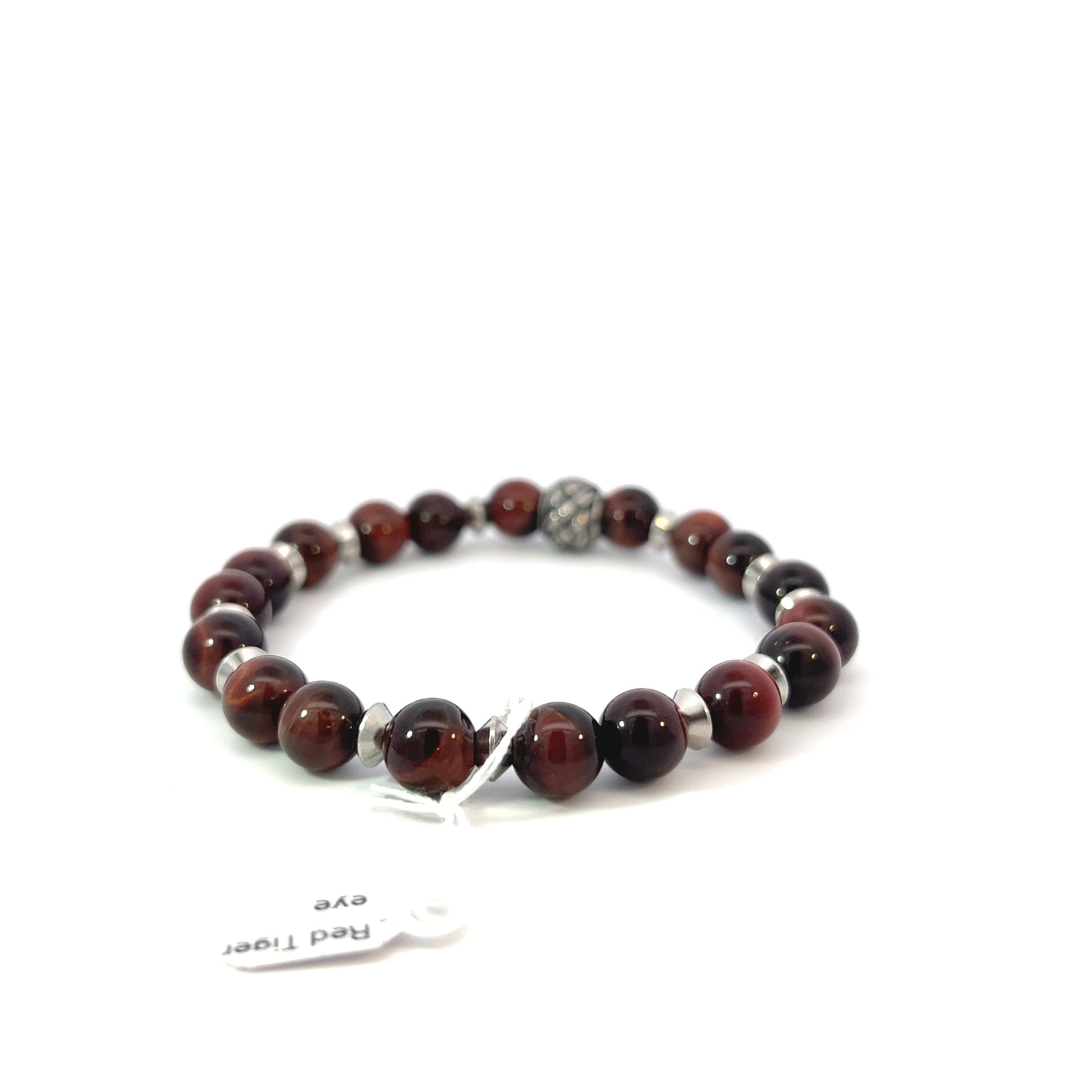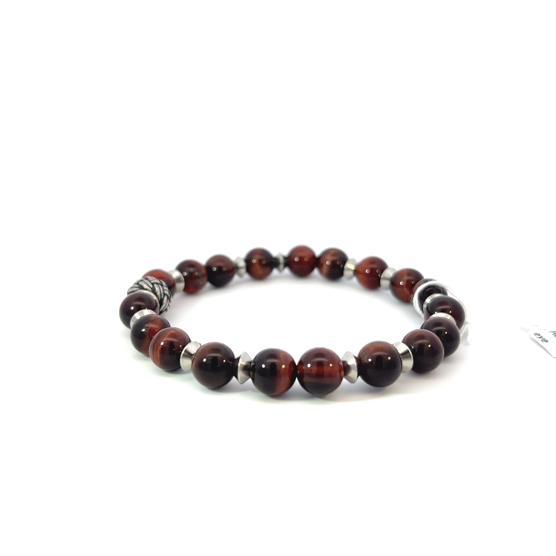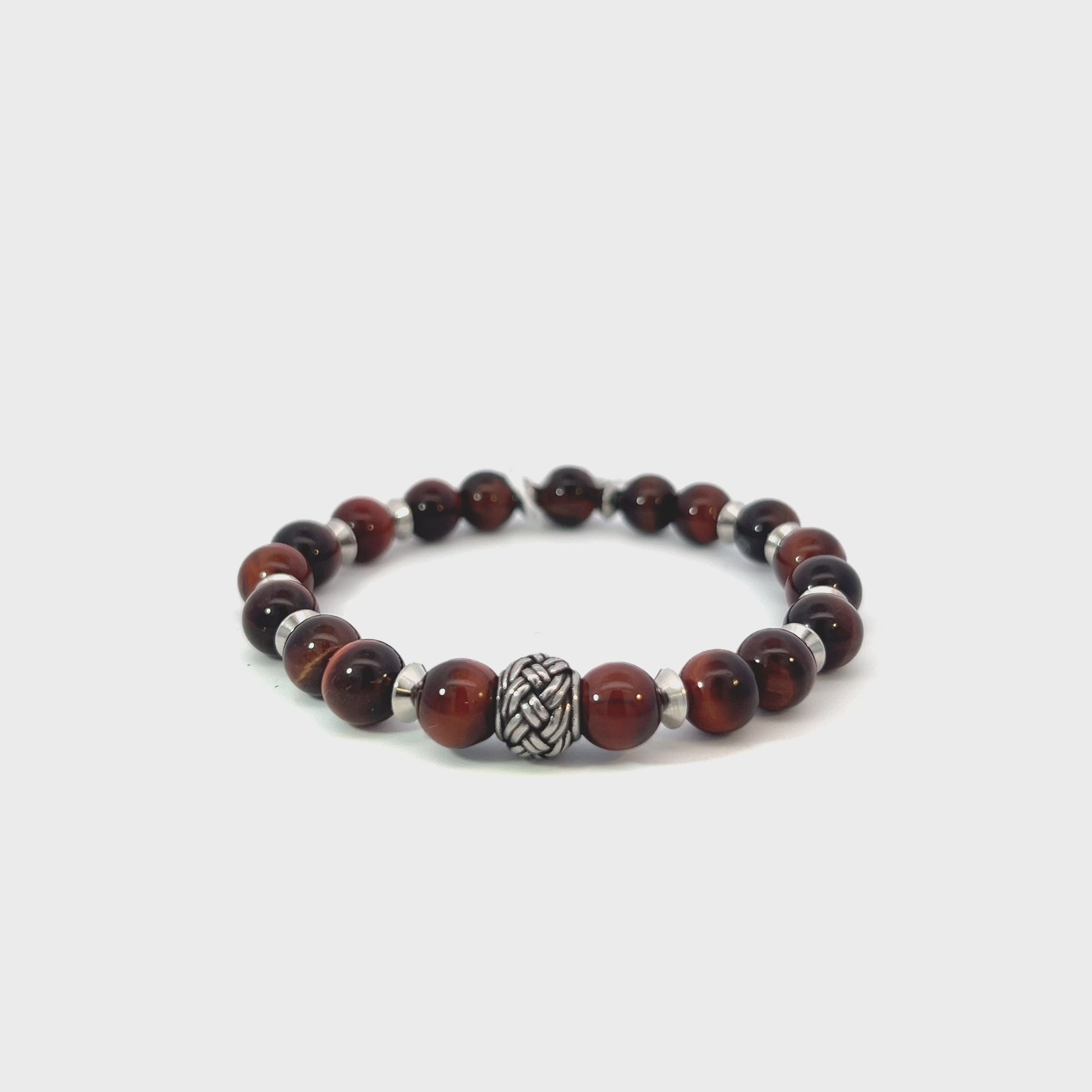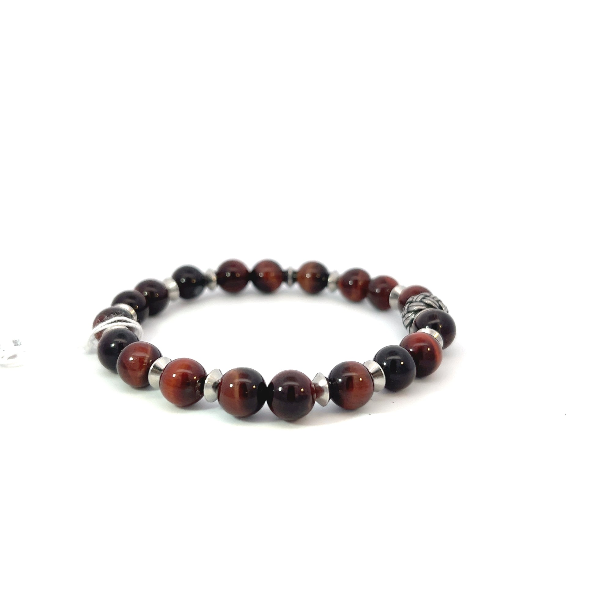 Bead Bracelet - Red Tiger Eye with Metal Weave Bead