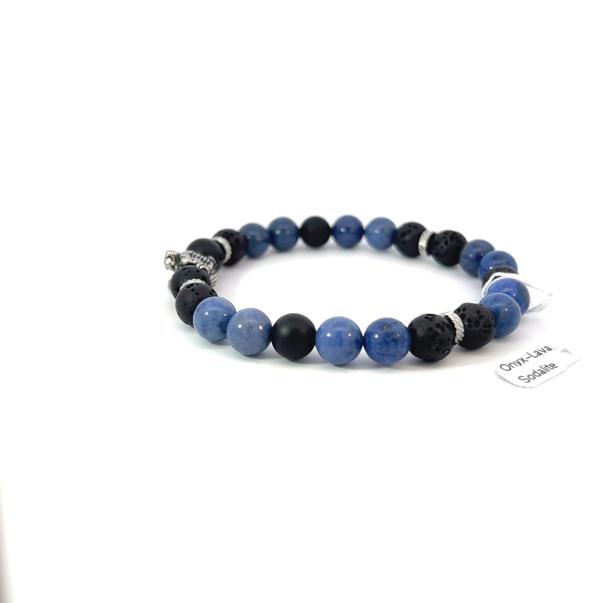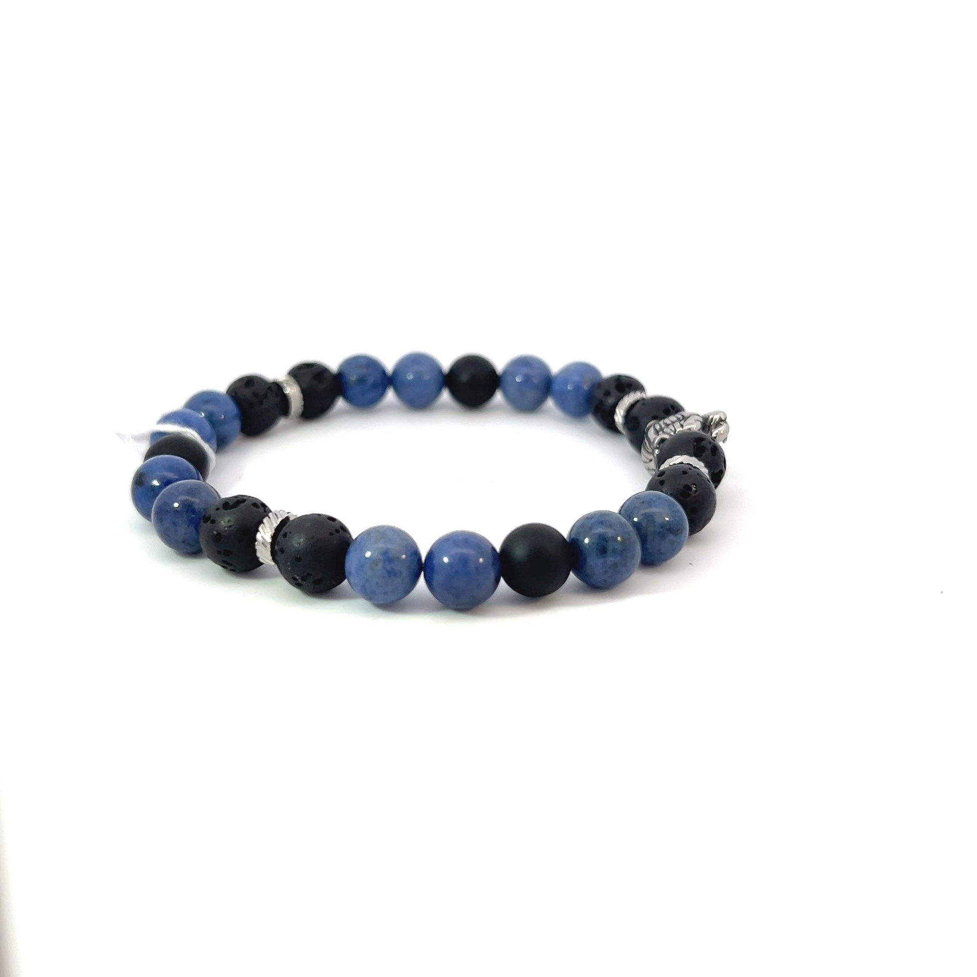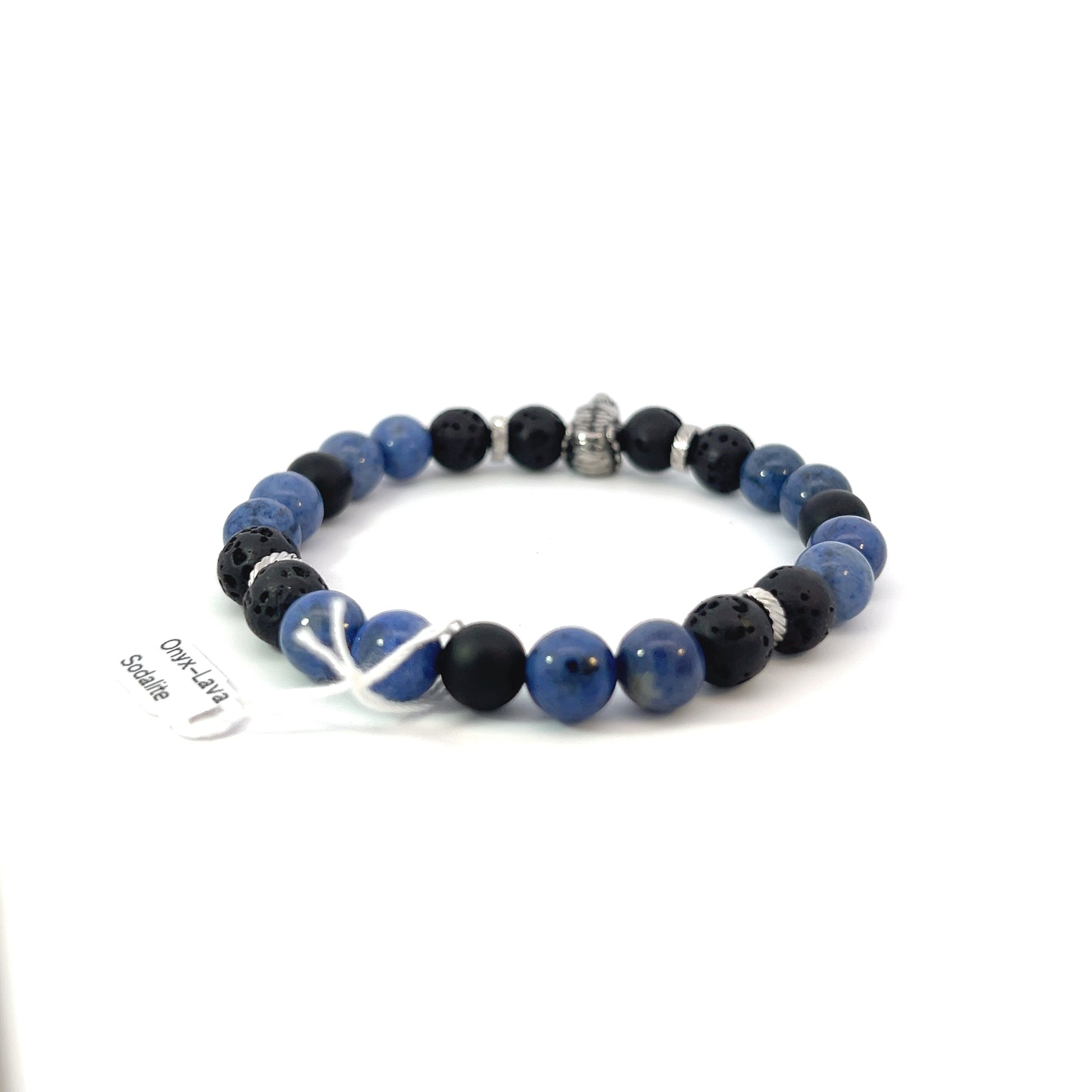 - Beads: 8mm Sodalite, Lava, and Matte Onyx