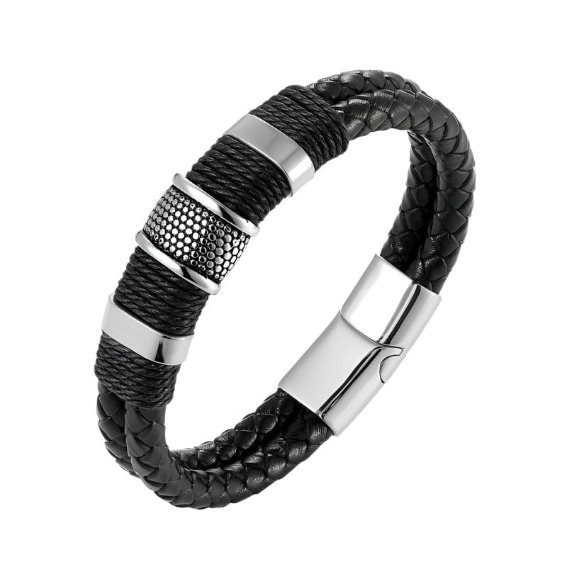 Crafted from durable and premium black cowhide leather with a stylish braided design. -