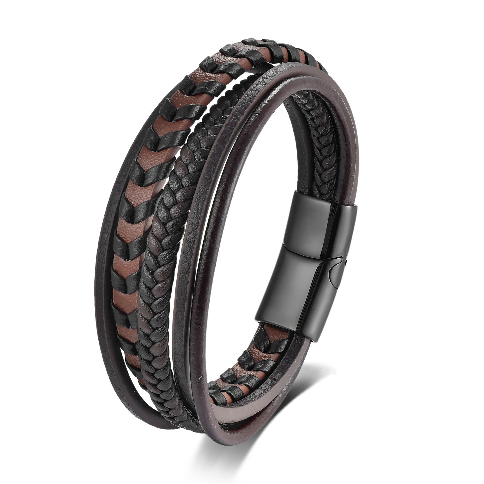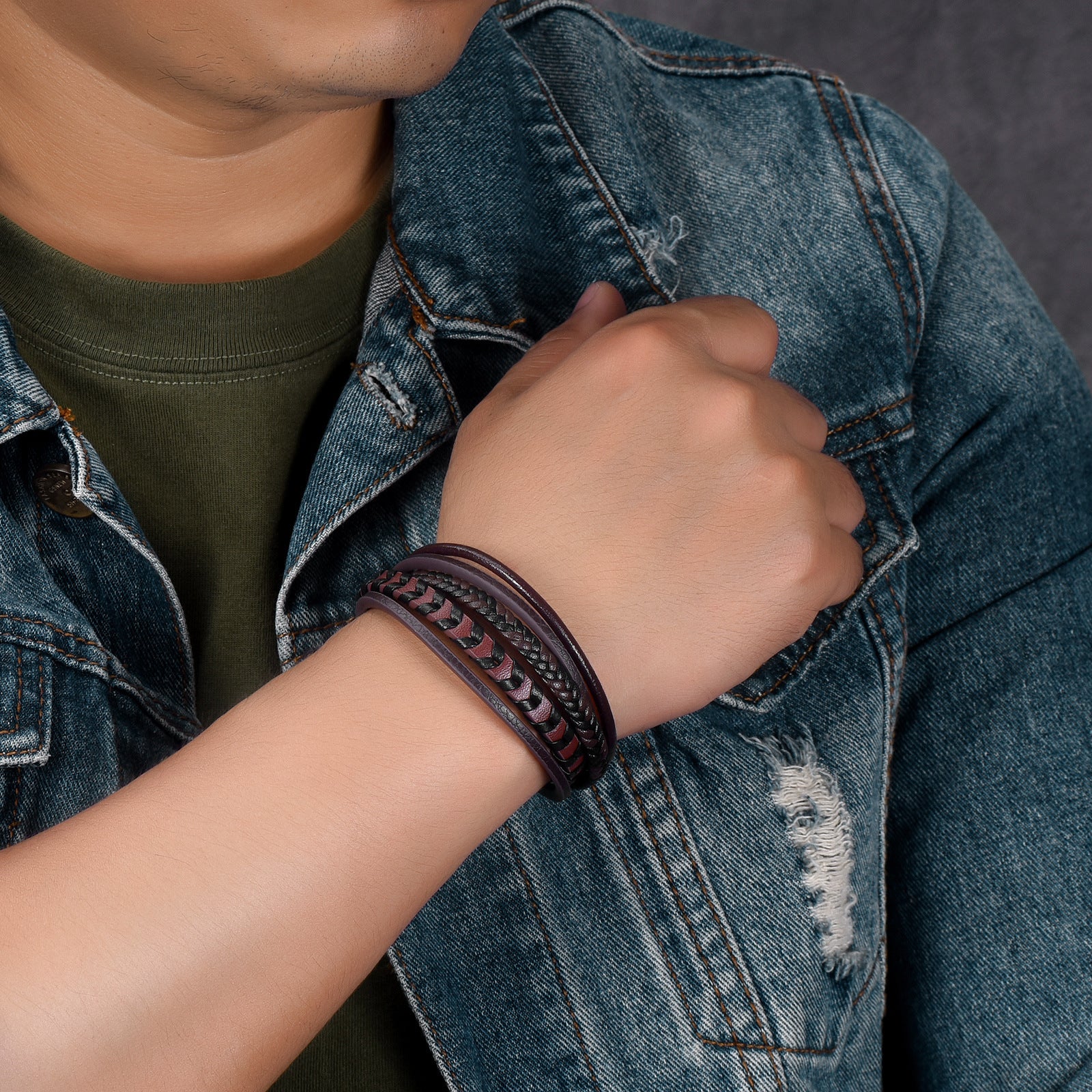 Leather Bracelet - Multilayer Leather Cord Bracelet in Brown