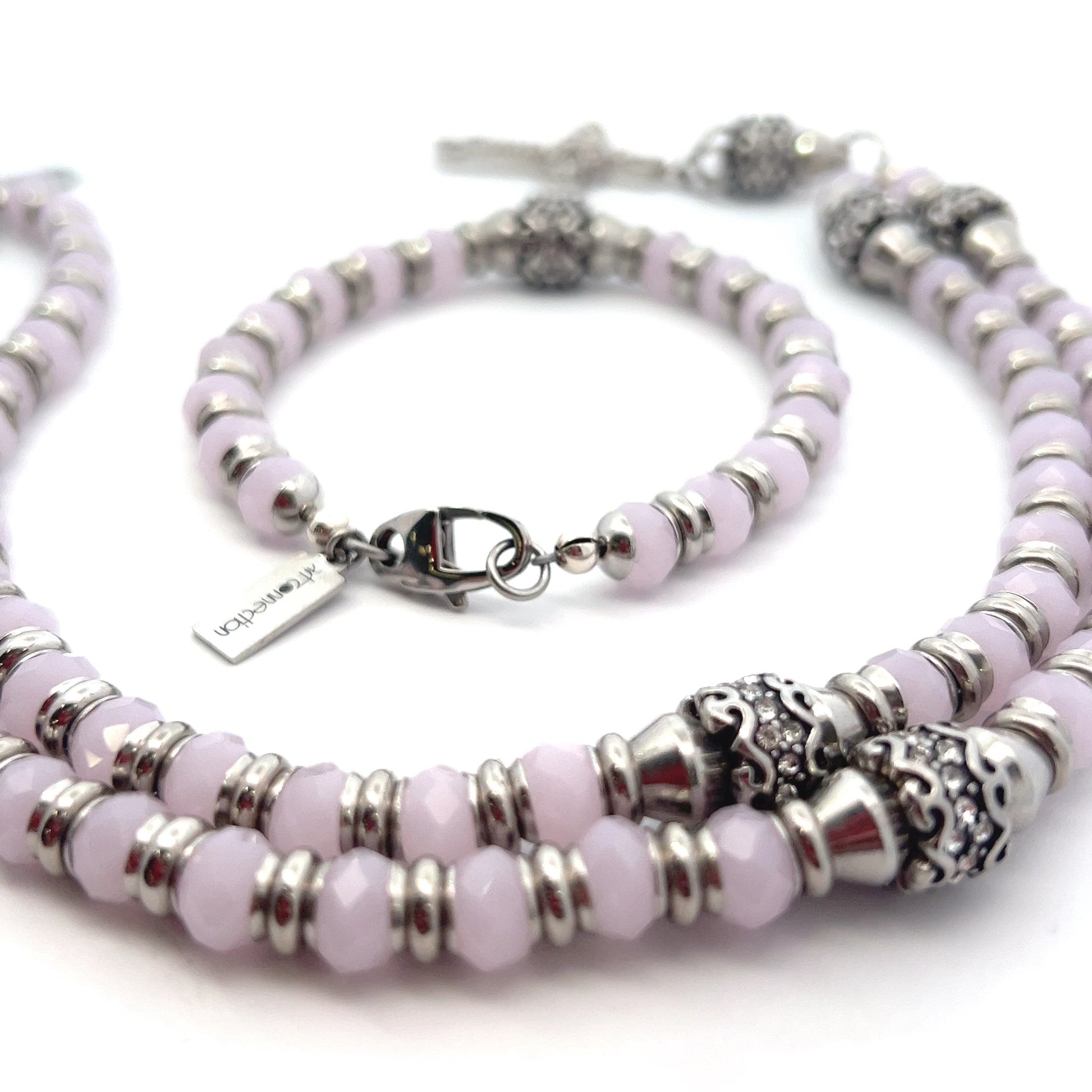 Material: Rose crystal and Steel spacers