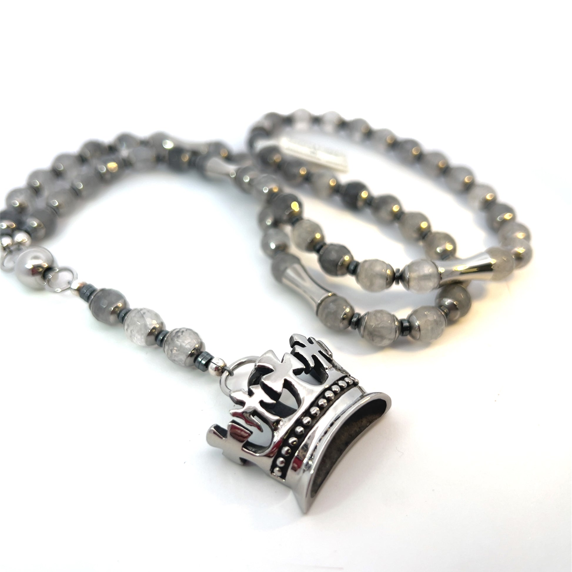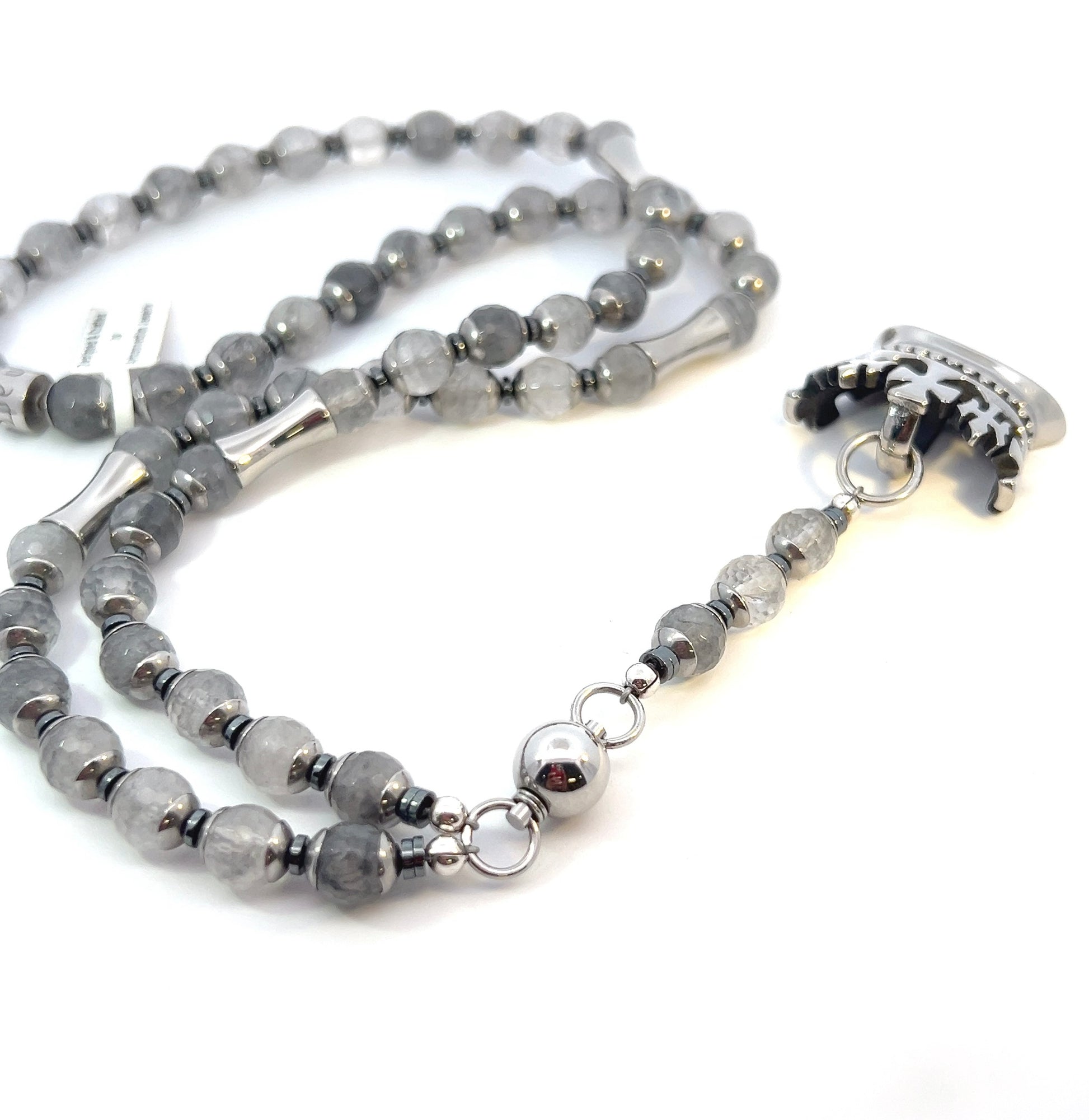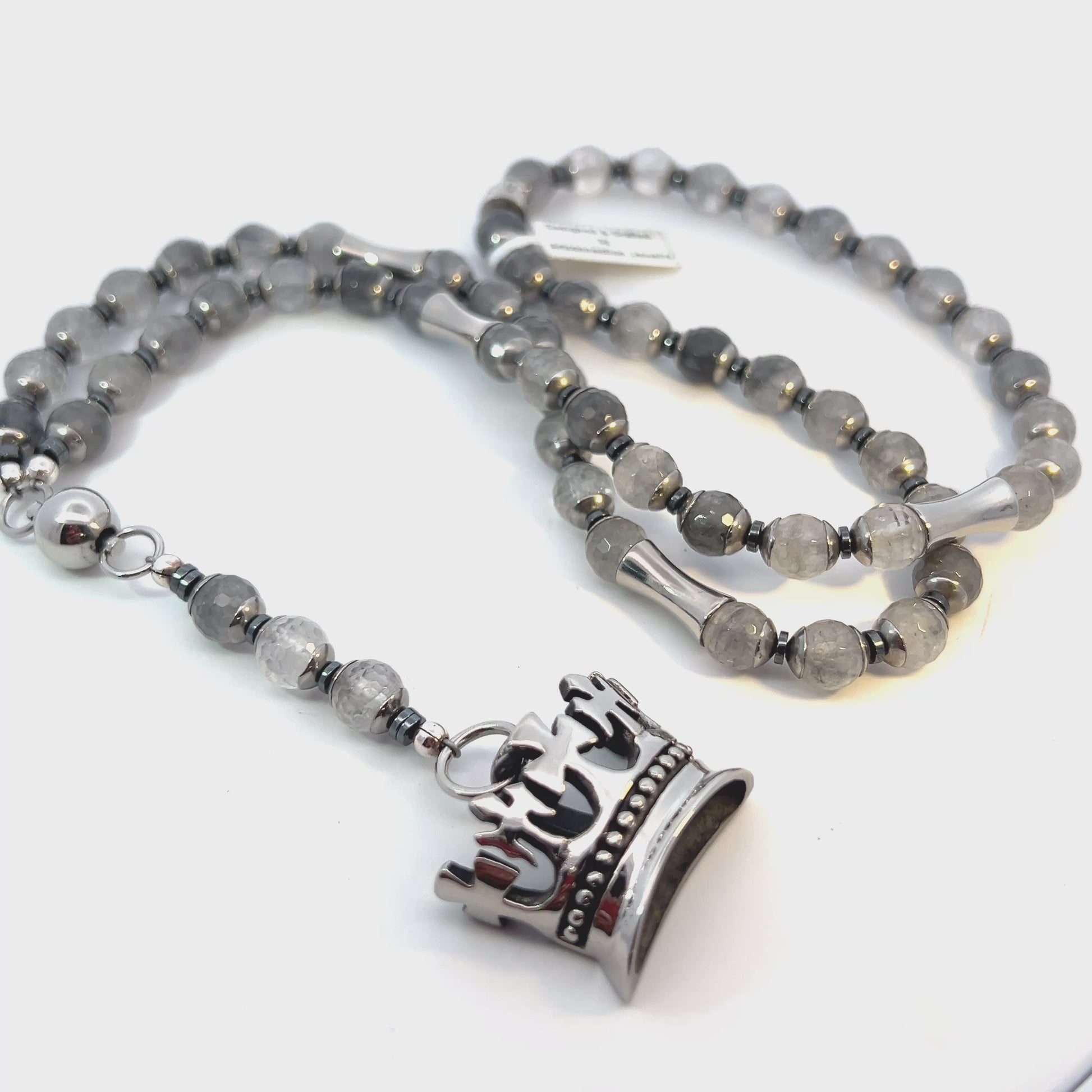 Material: Rutilated Quartz with Hematite spacers and steel enhancers
