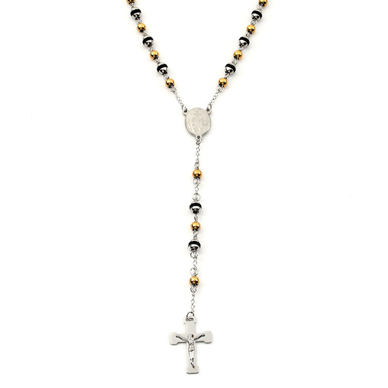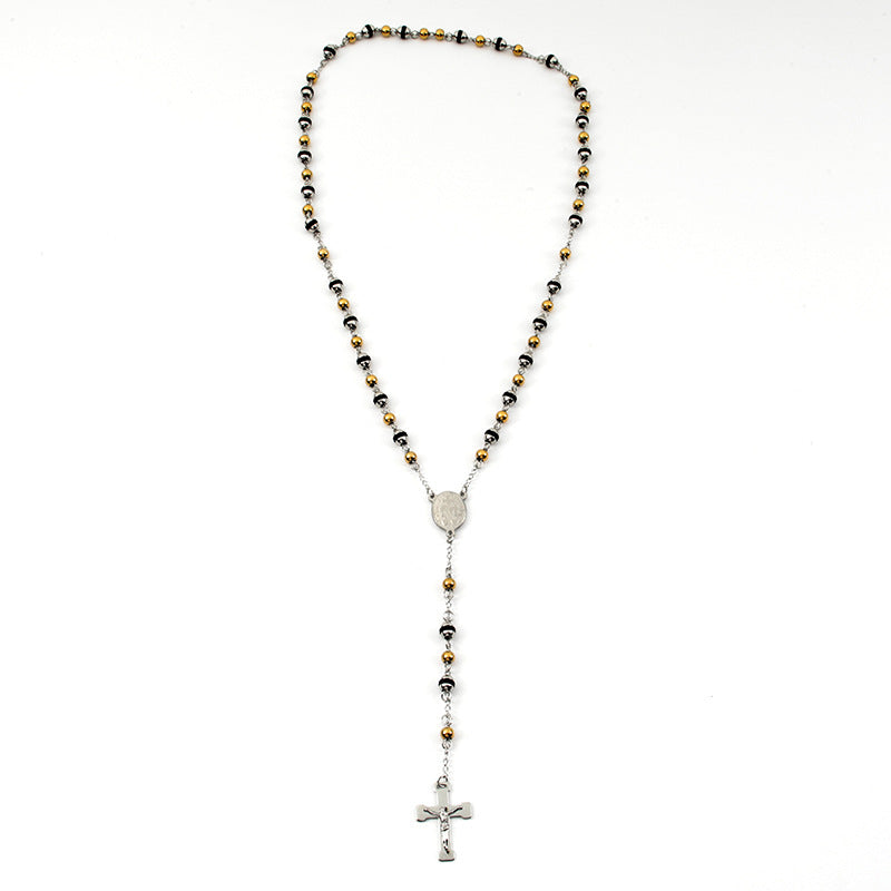 Whether used for prayer or worn as a statement of faith, this two-tone steel rosary offers a perfect blend of style and meaning.