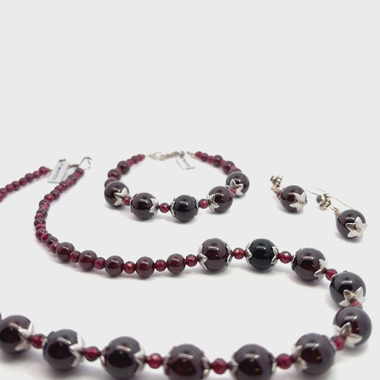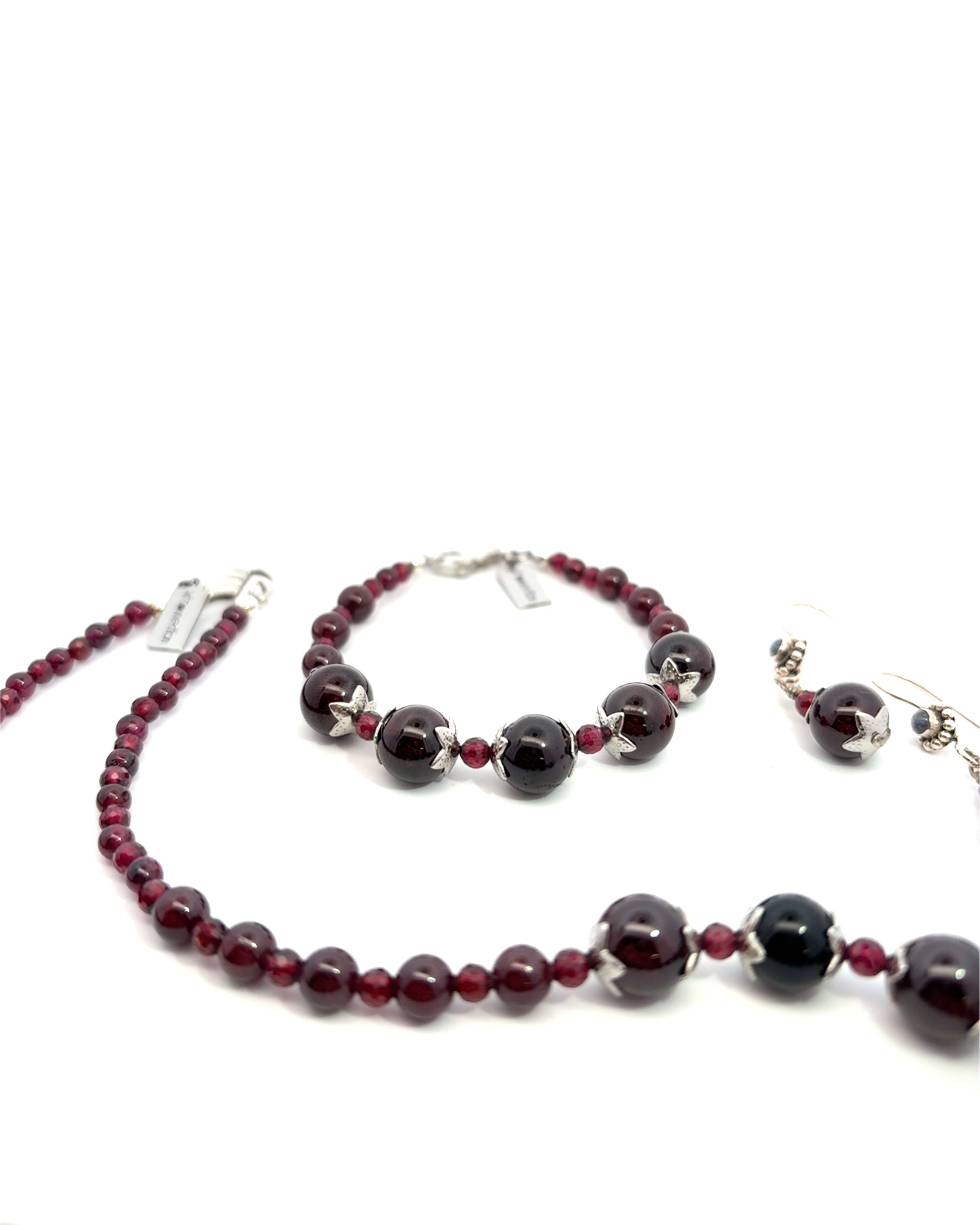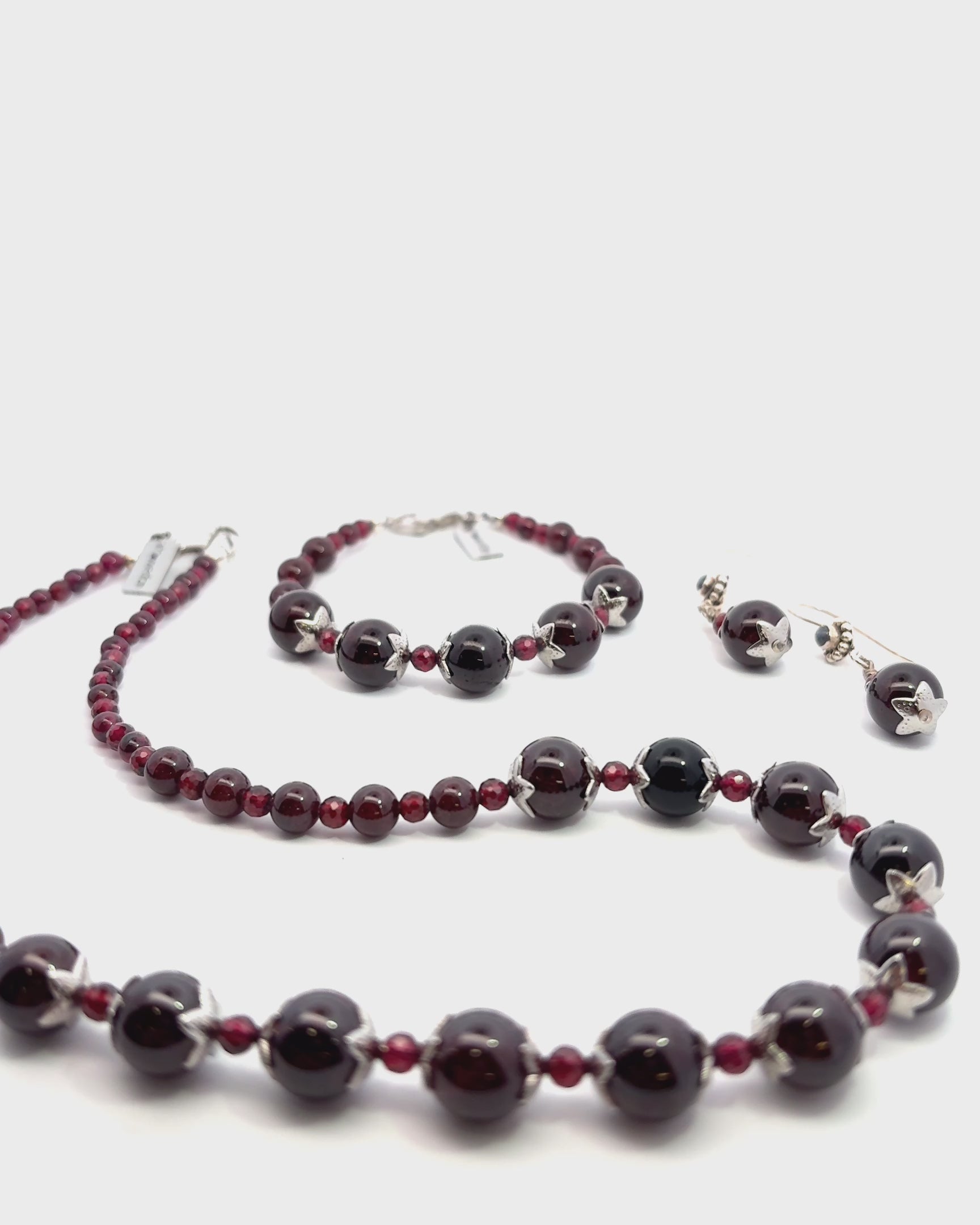 Each piece is carefully handcrafted, making every set unique. The natural variations in the Garnet beads highlight the authenticity and organic character of this semi-precious stone.