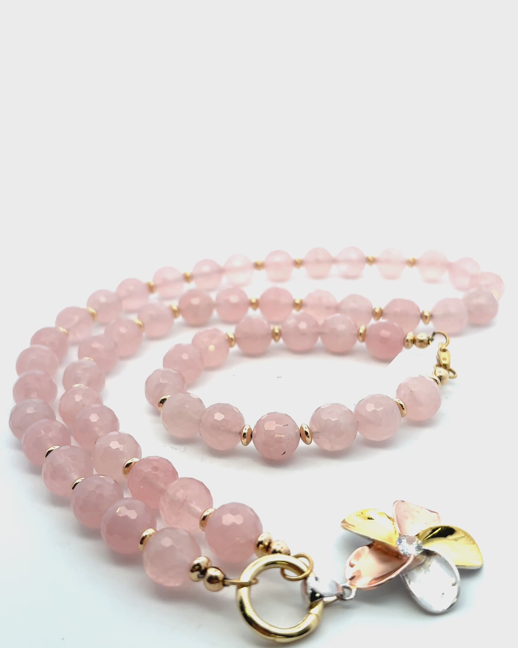 Designed with faceted Rose Quartz beads that reflect light beautifully, accented with Gold Filled spacers for a balanced and sophisticated look.