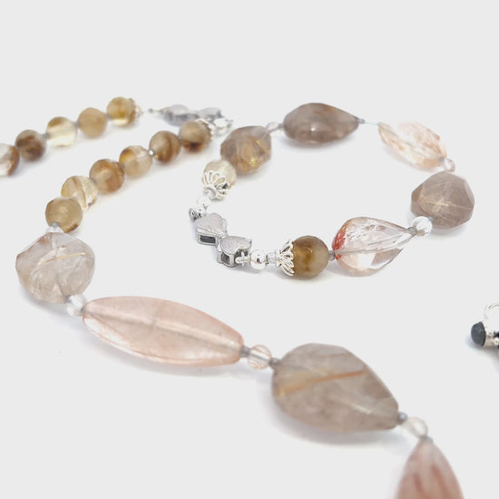 Semi-precious Rutilated Quartz, Labradorite, and silver clasp.